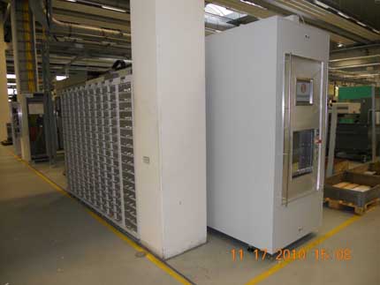 Im Netzwerk des Kunden sind auch mehrere KARDEX Shuttle-Systeme integriert, die über unseren Industrie-PC verwaltet und gesteuert werden. Der Kunde ist somit in der Lage sperrigste Teile zu lagern und diese auch im Bestand zu führen.