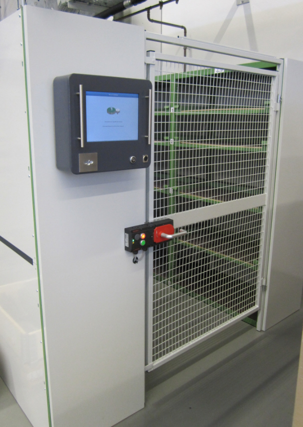 eigenen Produkte, sondern auch moderne Türschliesssysteme. Als Bindeglied setzen wir eine marktgängige SPS Steuerung von Siemens als ein. Hier wurde eine Eingatterung für ein Vorrichtungslager hergestellt. Der Zugang zum Vorrichtungslager erfolgt erst nach der Buchung der zu entehmenden Vorrichtung für ein Formenbauunternehmen. Alles wird stückgenau protokolliert und der Kunde hat zu jedem Zeitpunkt die Übersicht, wo sich die Vorrichtung befindet.